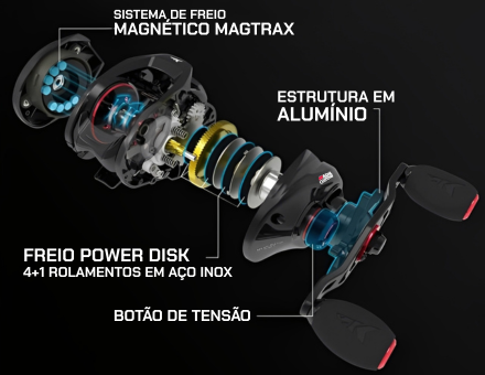 Com um sistema MAGTRAX (sistema de freio magnético de última geração), ela oferece controle absoluto da linha, reaproveitando a energia do próprio giro do carretel para manter um equilíbrio perfeito durante o arremesso.